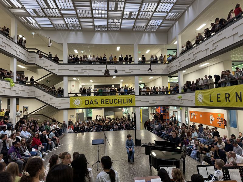 Nachdem die Fünftklässler bereits beim ersten Meet’n’Greet im Juli ihre neuen Klassenkameraden und ihre Klassenlehrer kennenlernen konnten, wurden sie am ersten Dienstag des Schuljahres offiziell von der gesamten Schulgemeinschaft in die Reuchlinfamilie aufgenommen.